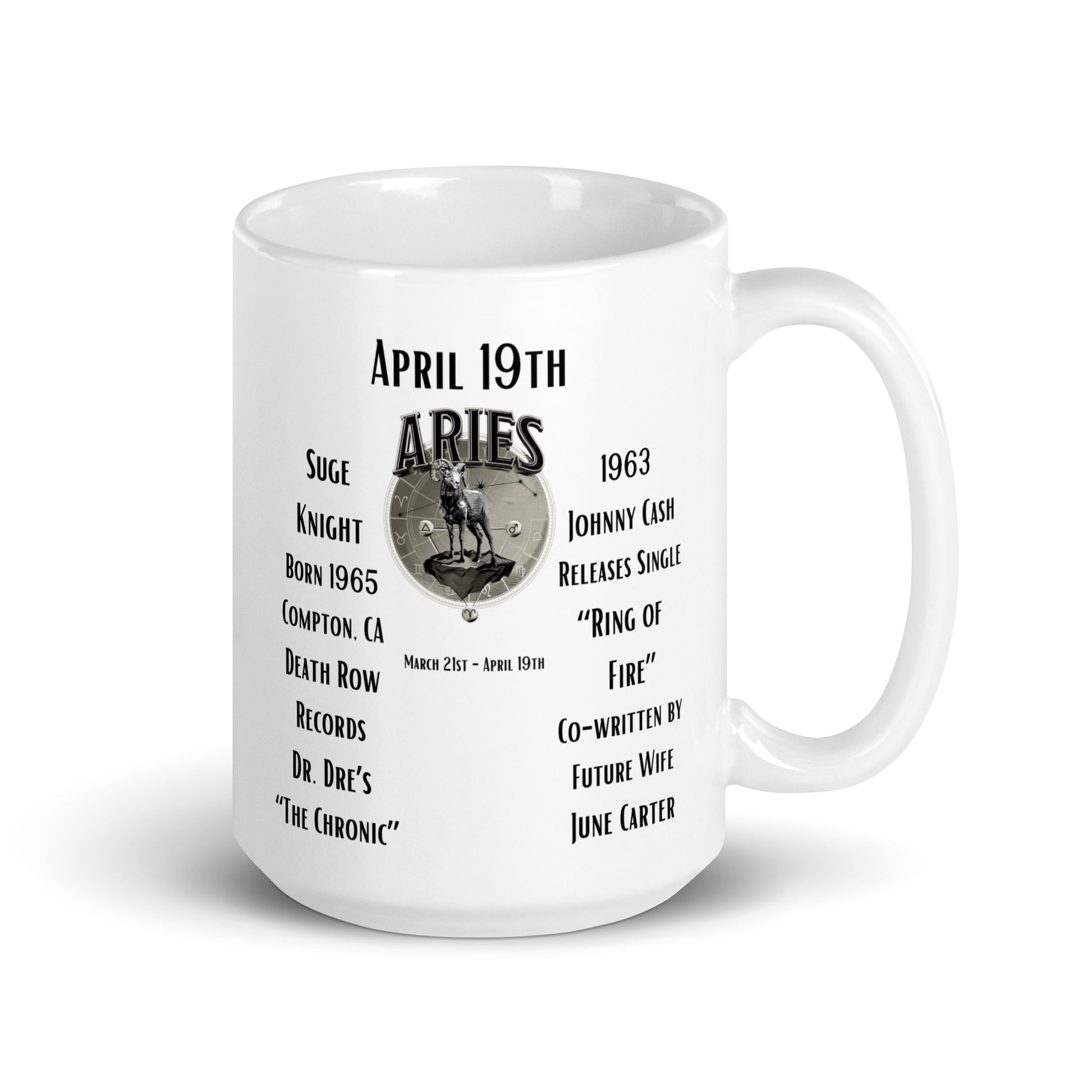 April 19th is a day that bridges the worlds of music production and iconic country sound. Born on this day in 1965, Suge Knight, a notable figure in the music industry, played a significant role in the rise of West Coast rap and hip-hop through Death Row Records. This date also resonates with the legendary rhythms of Johnny Cash, as April 19th, 1963, marked the release of his classic hit "Ring of Fire." This song, with its distinctive sound and poignant lyrics, became one of his most famous tracks, cementing his legacy in the annals of country music. This mug honors both the behind-the-scenes power of music production and the enduring appeal of classic country tunes.