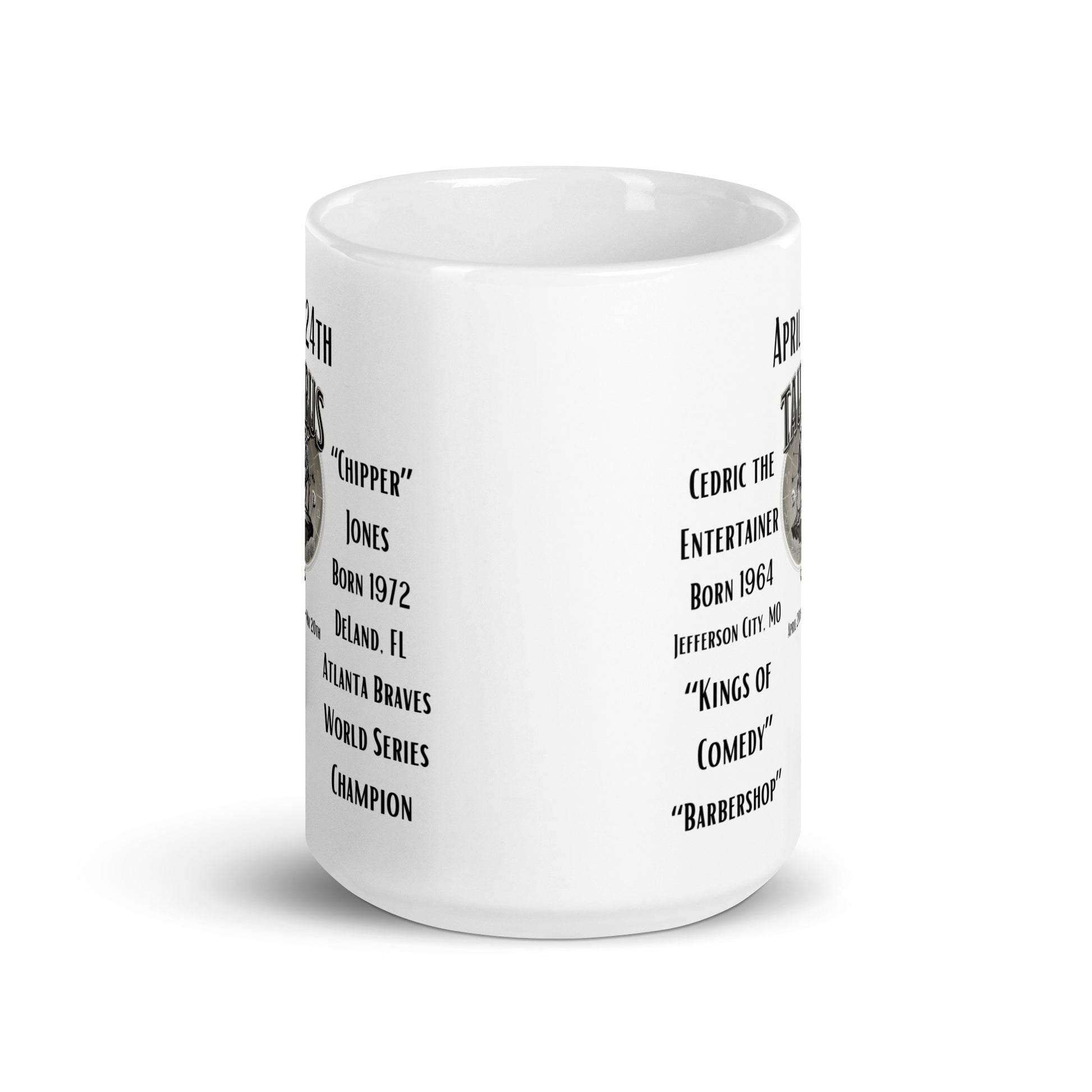 On This Day: Birthday Series - April 24th - (B) Cedric the Entertainer & Chipper Jones - White glossy mug