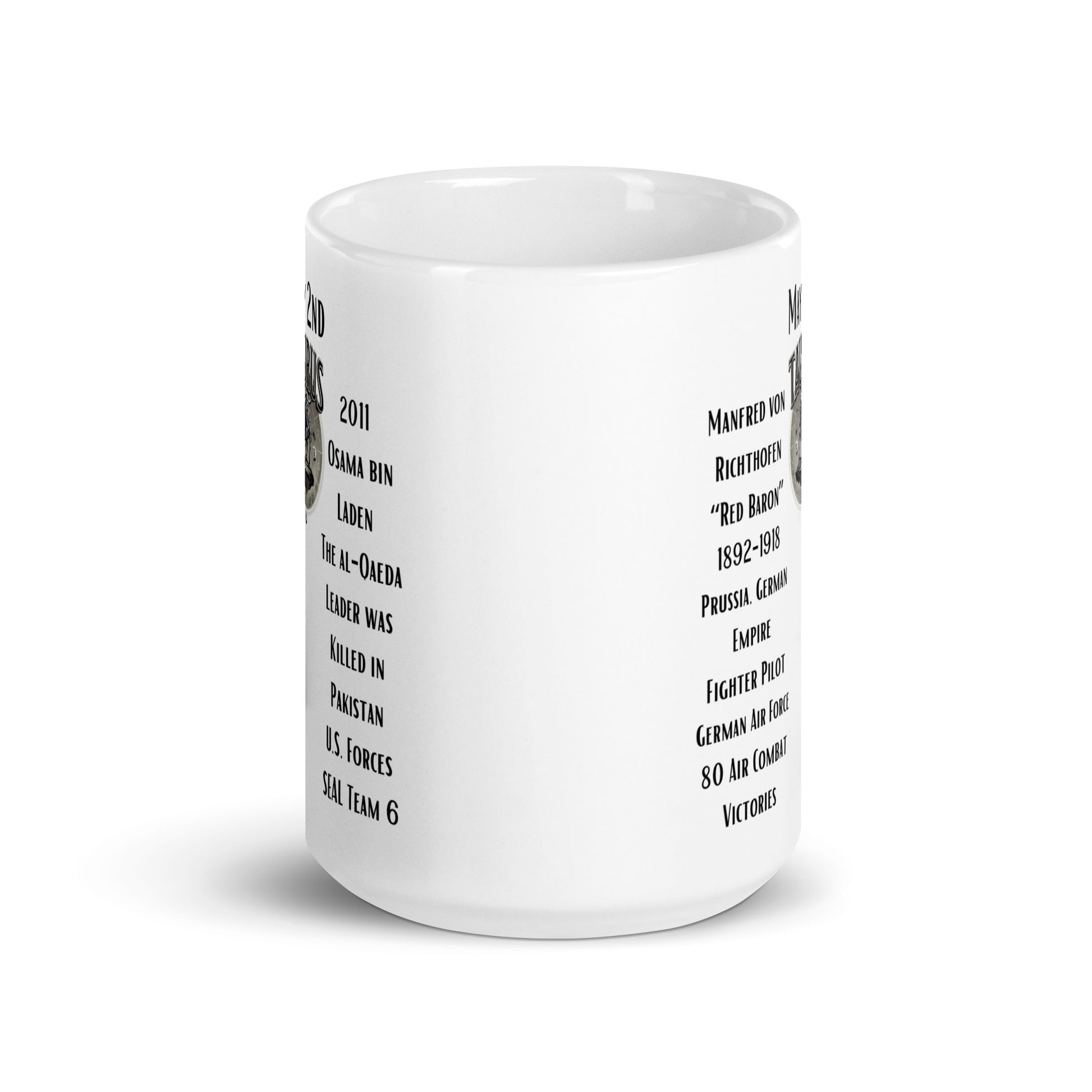 On This Day: Birthday Series - May 02 - (B) Manfred von Richthofen "Red Baron" & Osama bin Laden Killed - White glossy mug