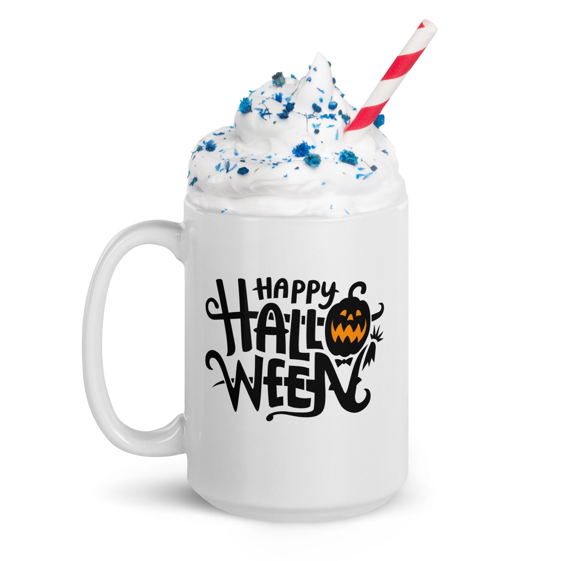 Get ready to celebrate Halloween with our "HAPPY HALLOWEEN" mug! This festive mug features the iconic phrase "HAPPY HALLOWEEN" in bold, spooky lettering. With its vibrant colors and Halloween-themed design, this mug is perfect for adding a touch of holiday spirit to your morning coffee or evening hot cocoa. Made from high-quality ceramic, it's both microwave and dishwasher safe, ensuring convenience and durability. The comfortable handle makes it easy to hold and enjoy your favorite Halloween beverages. Whether you're hosting a costume party, trick-or-treating with the kids, or simply embracing the Halloween vibes, this "HAPPY HALLOWEEN" mug is a must-have addition to your festive drinkware collection. So grab your mug, fill it up with your favorite potion, and let the Halloween fun begin!