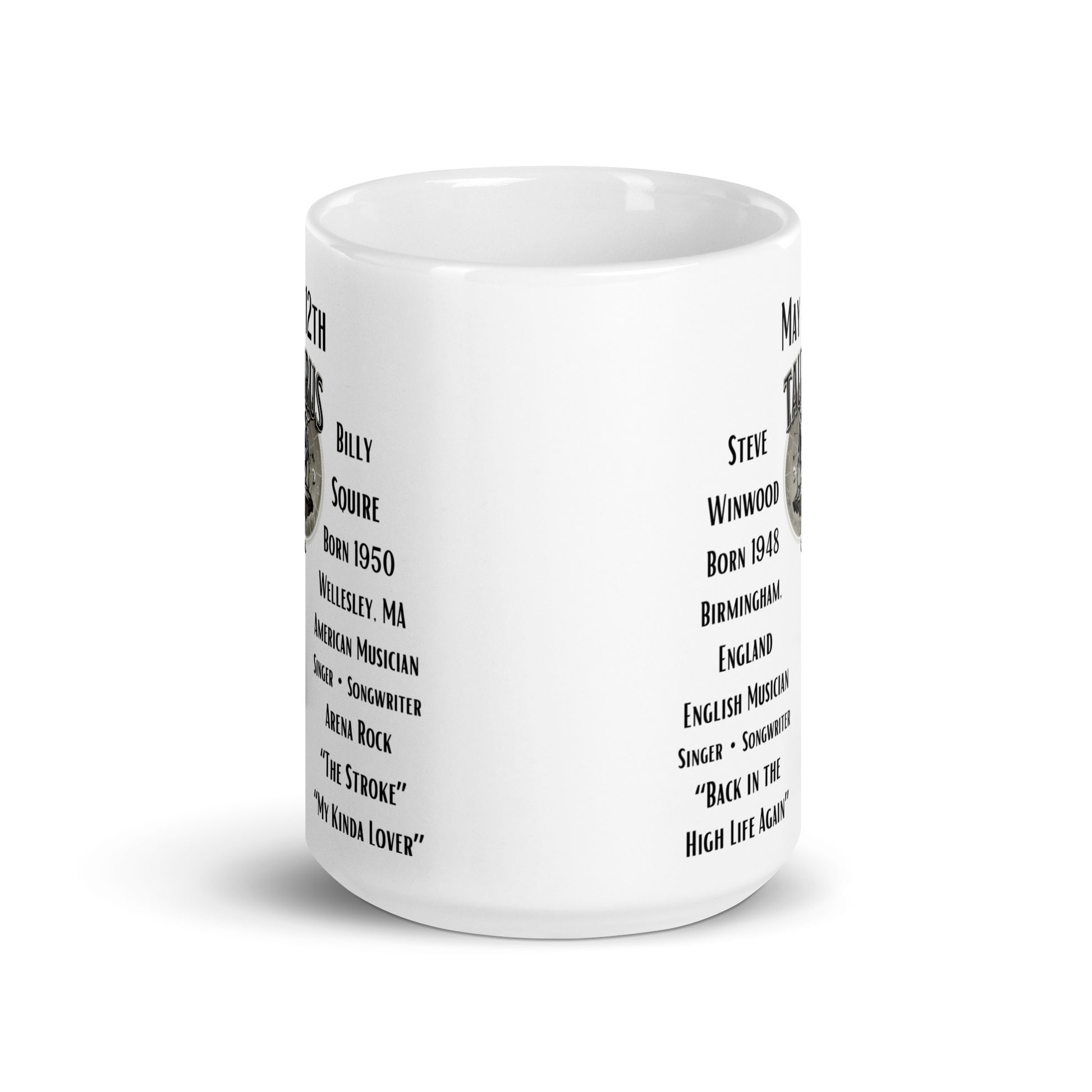 On This Day: Birthday Series - May 12th - (B) Steve Winwood & Billy Squire - White glossy mug