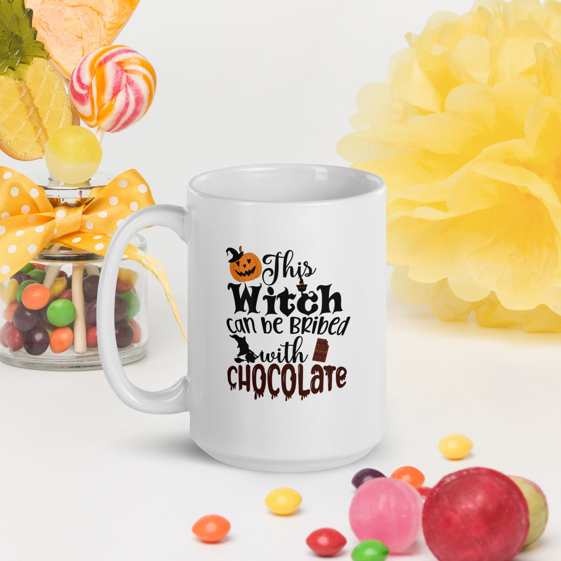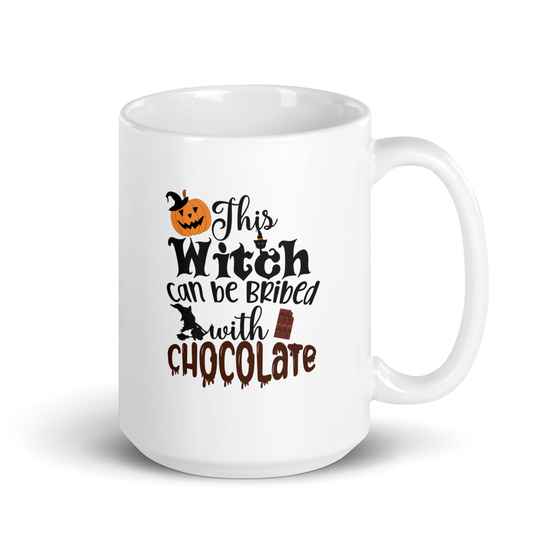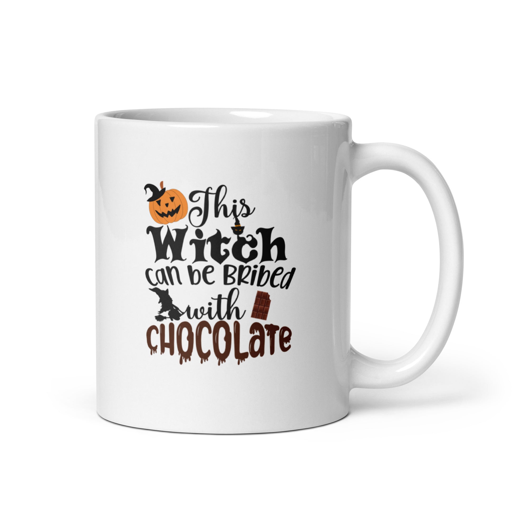 Embrace the whimsical spirit of Halloween with our "This Witch can be BRIBED with CHOCOLATE" mug! This enchanting mug features a playful message that captures the essence of the season. With its vibrant colors and Halloween-themed design, this mug is perfect for sipping your favorite hot beverages while indulging in the sweet delights of the holiday. Made from high-quality ceramic, it's both microwave and dishwasher safe, ensuring convenience and durability. The comfortable handle makes it easy to hold and enjoy your hot cocoa, coffee, or tea. Whether you're brewing potions, casting spells, or simply enjoying the fall festivities, this "This Witch can be BRIBED with CHOCOLATE" mug is a delightful addition to your Halloween collection. So grab your mug, fill it up with your favorite brew, and let the magic unfold!