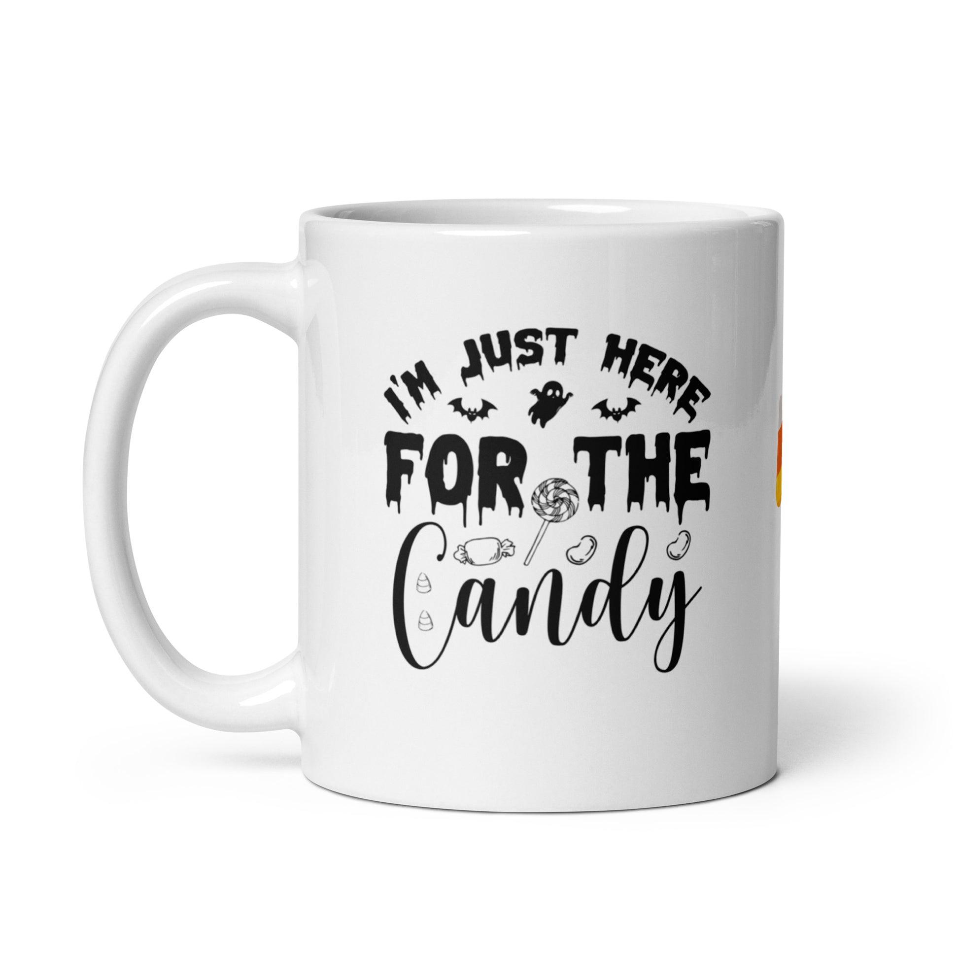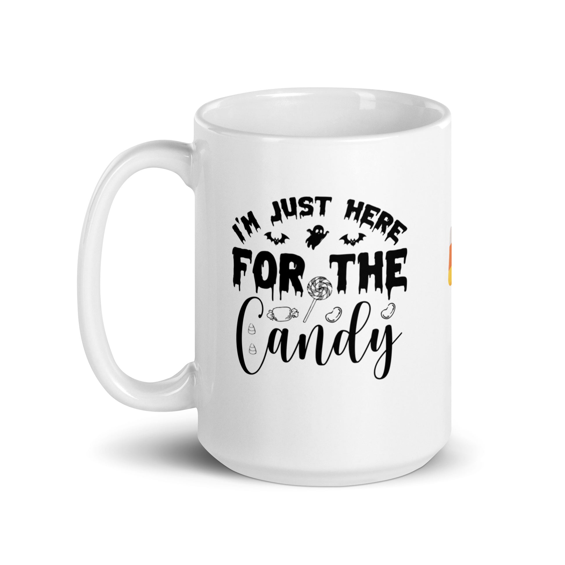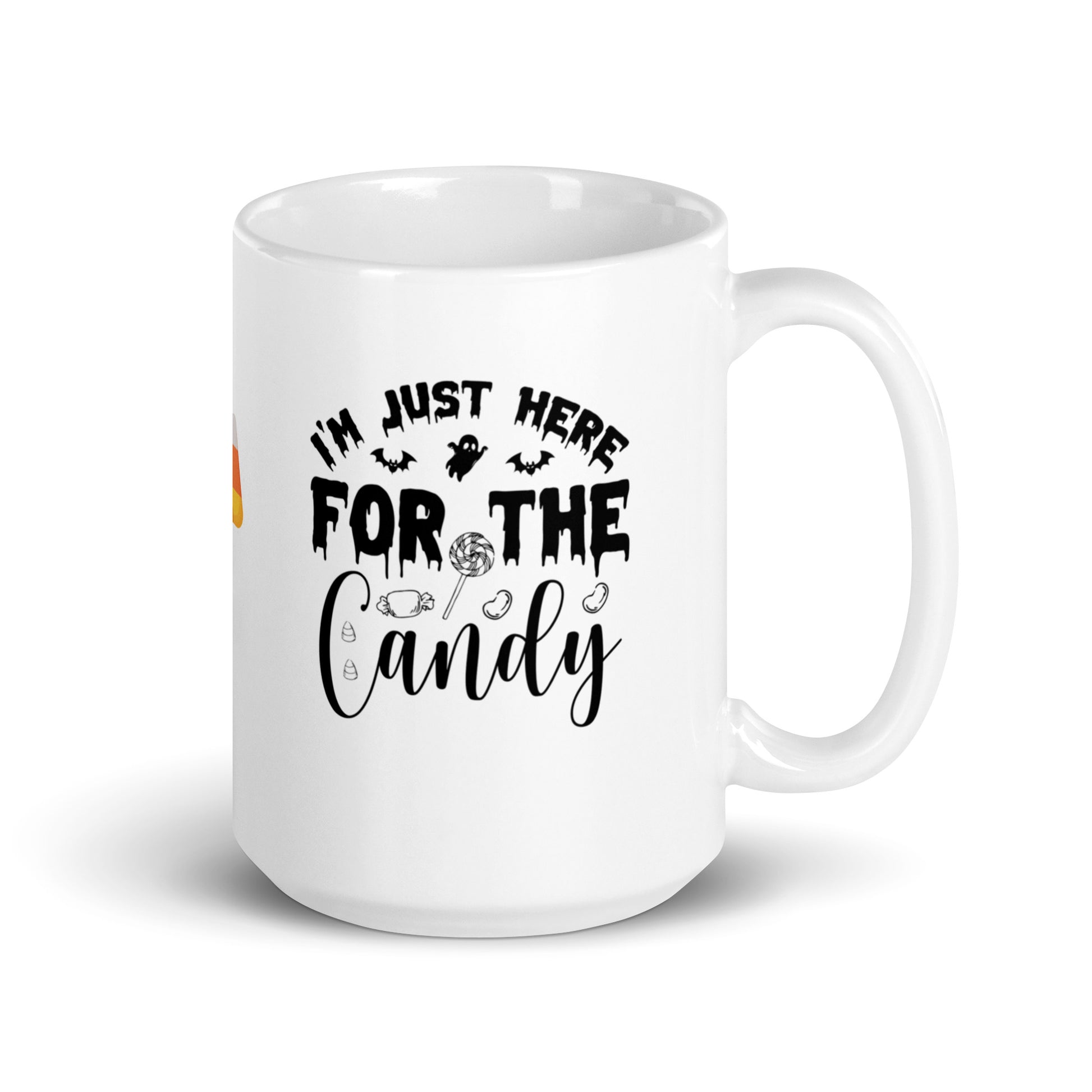 Halloween #16 "I'M JUST HERE FOR THE Candy" Full Wrap White glossy mug