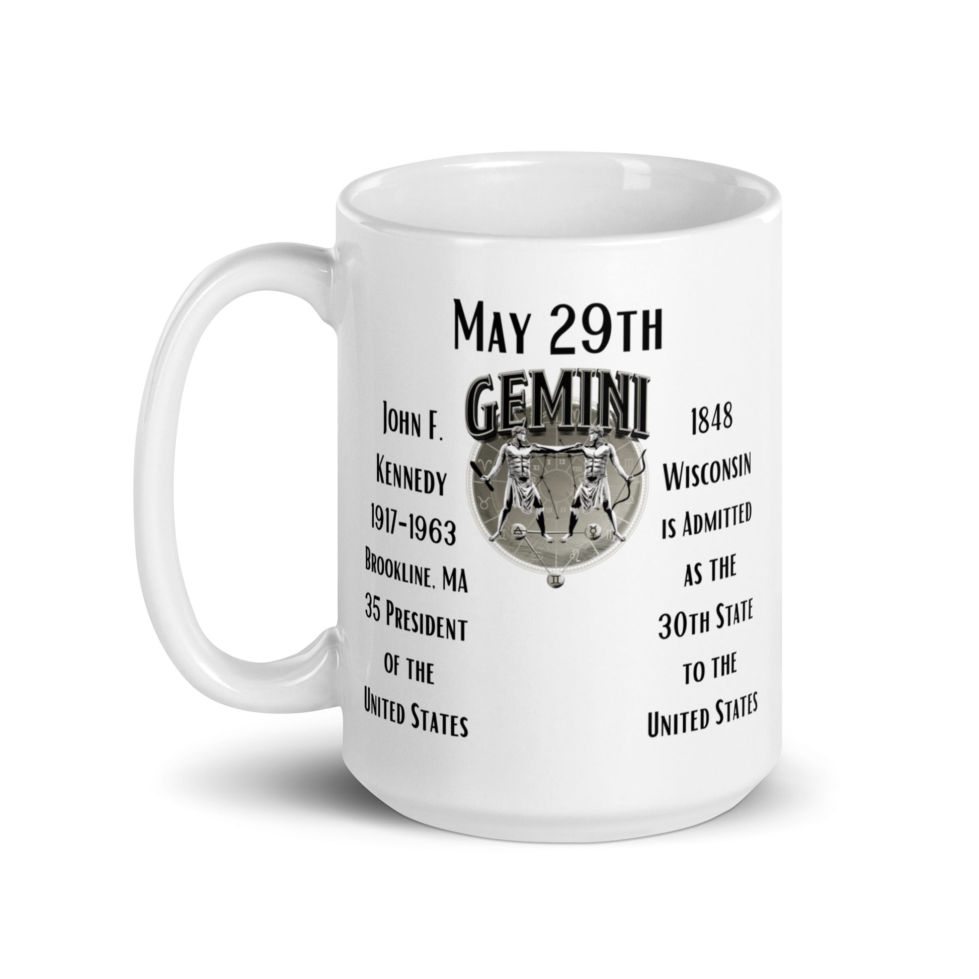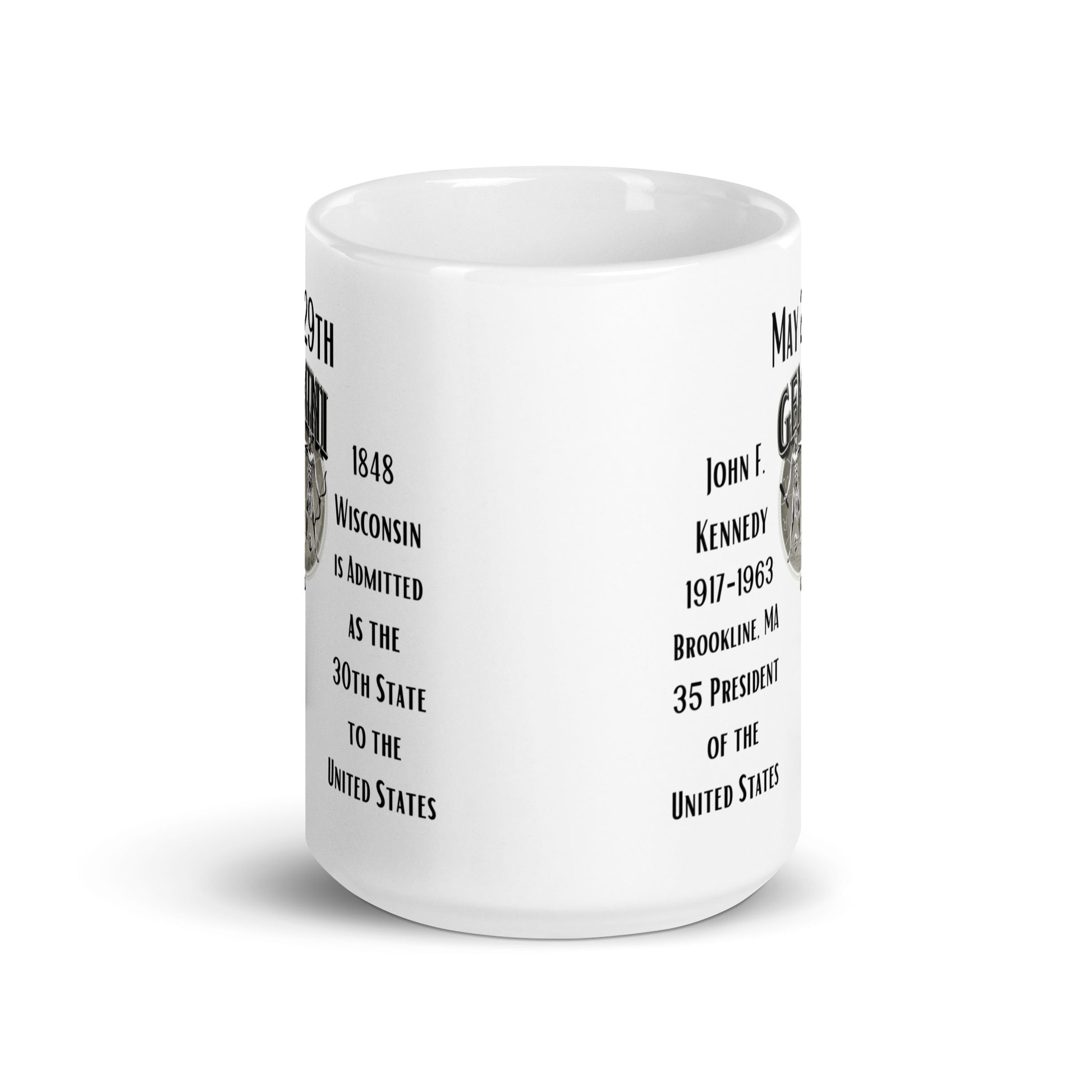 On This Day: Birthday Series - May 29th - (A) John F. Kennedy & Wisconsin - White glossy mug