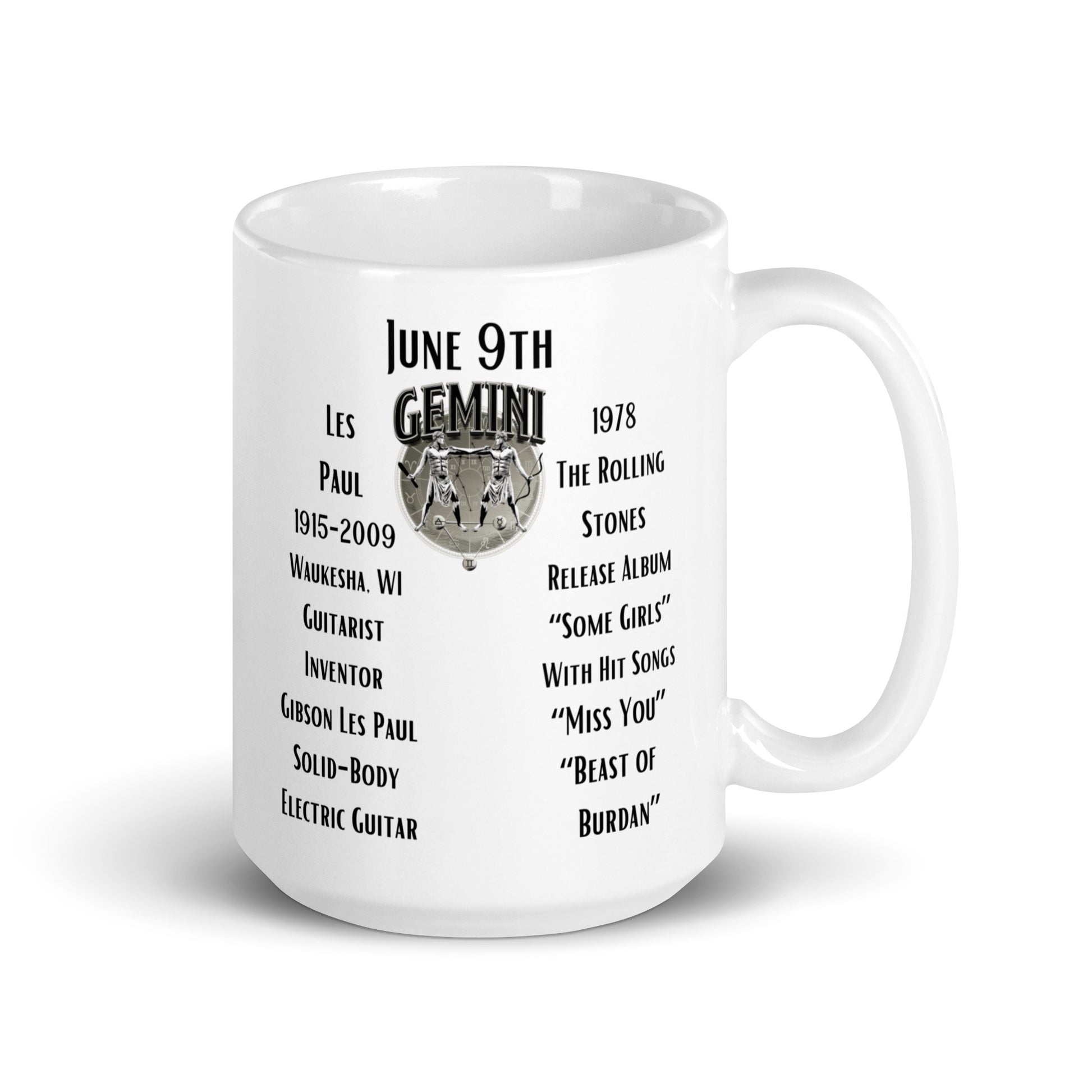 On This Day: Birthday Series - June 09th - (A) Les Paul & The Rolling Stones - White glossy mug