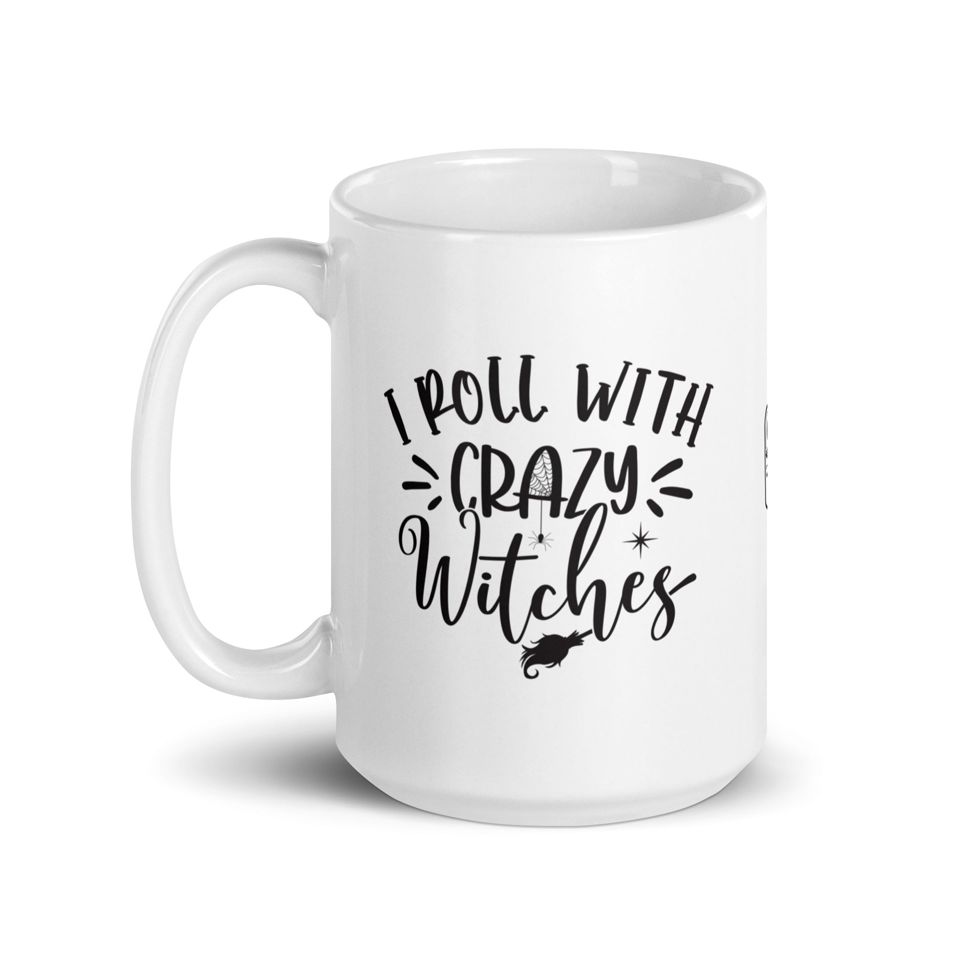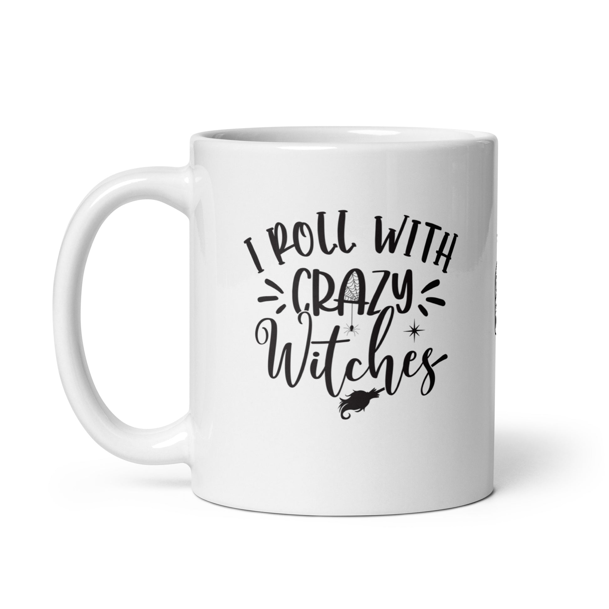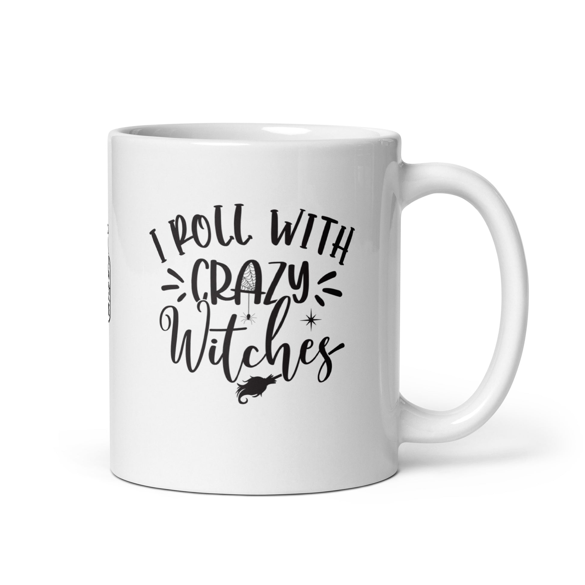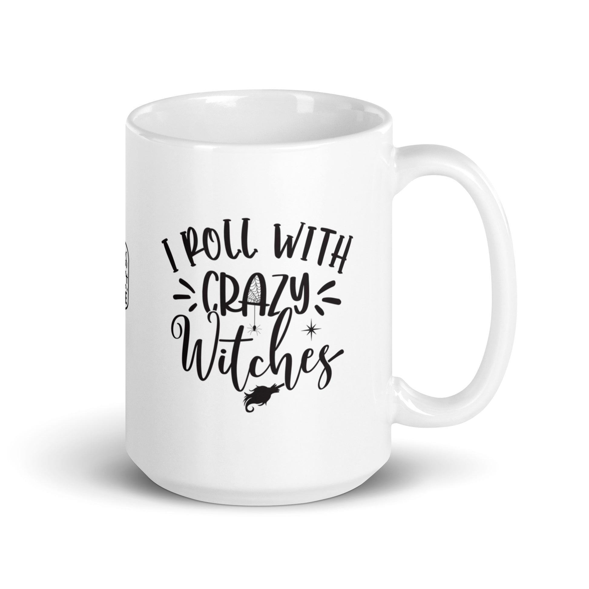 Halloween #14 "I ROLL WITH CRAZY Witches" Full Wrap White glossy mug