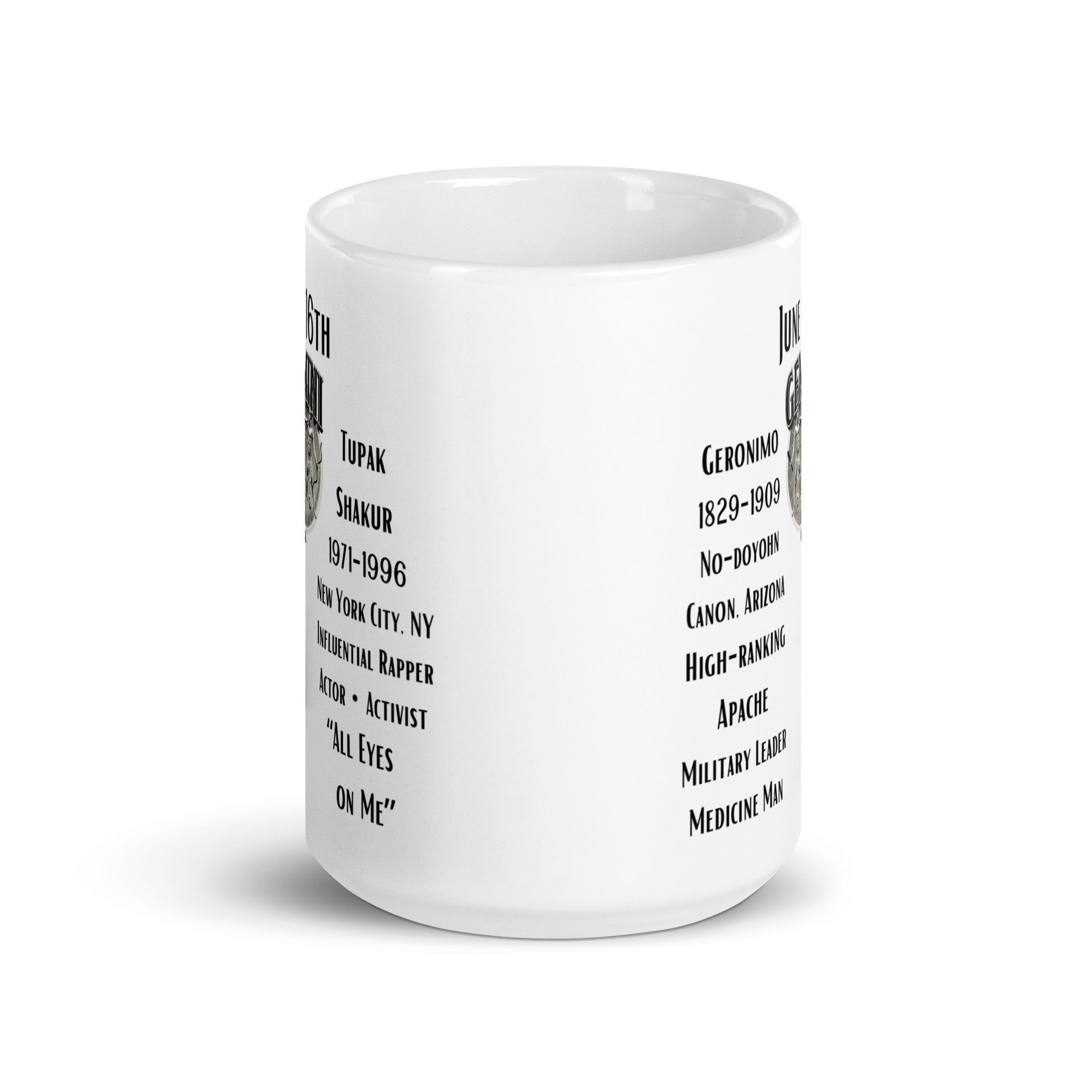 On This Day: Birthday Series - June 16th - (A) Geronimo & Tupac Shakur - White glossy mug