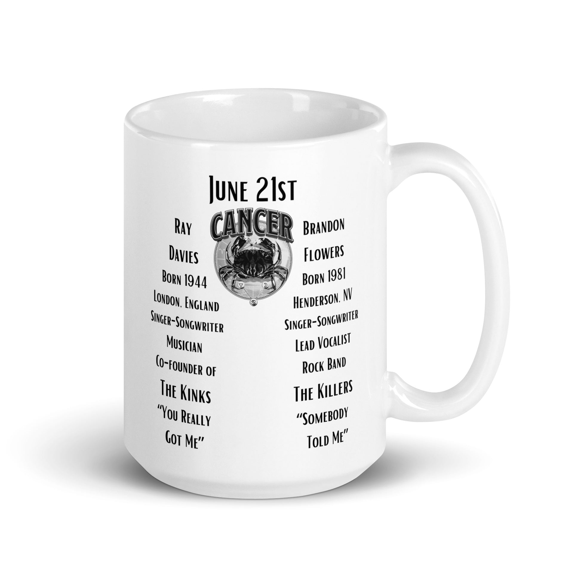 On This Day: Birthday Series - June 21st - (B) Ray Davies & Brandon Flowers - White glossy mug