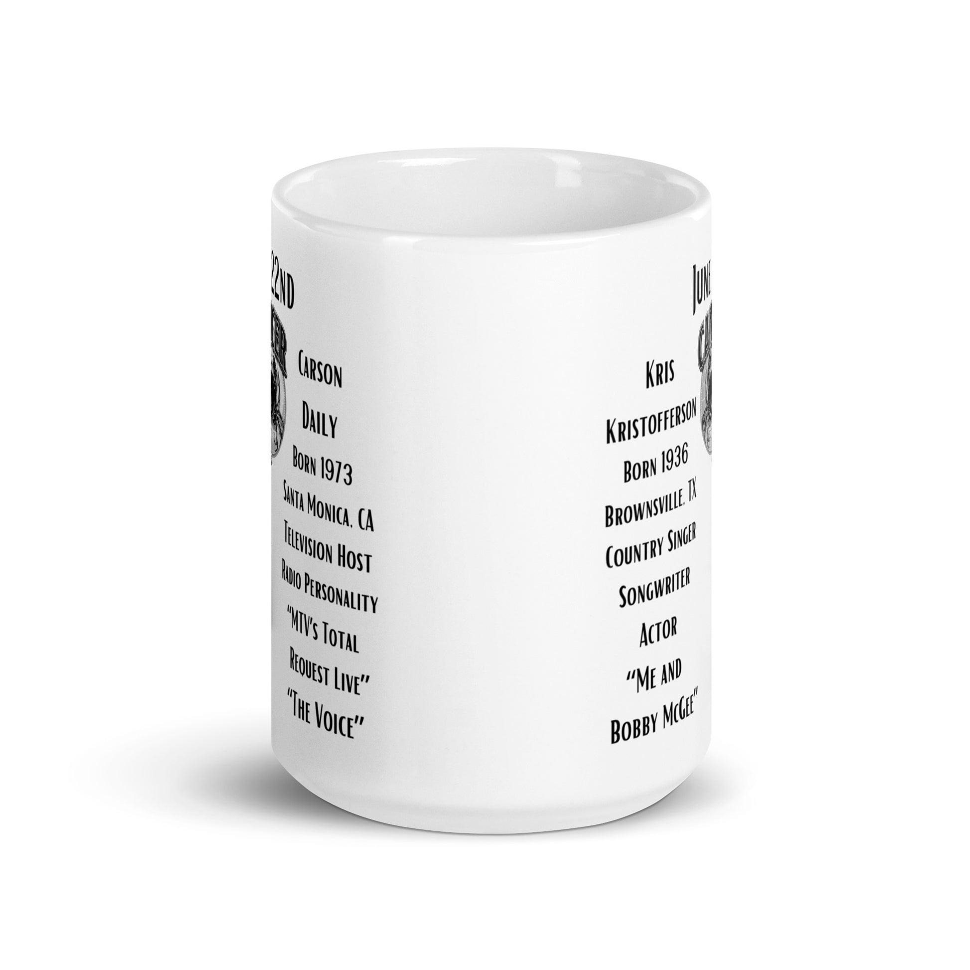 On This Day: Birthday Series - June 22nd - (A) Kris Kristofferson & Carson Daly - White glossy mug