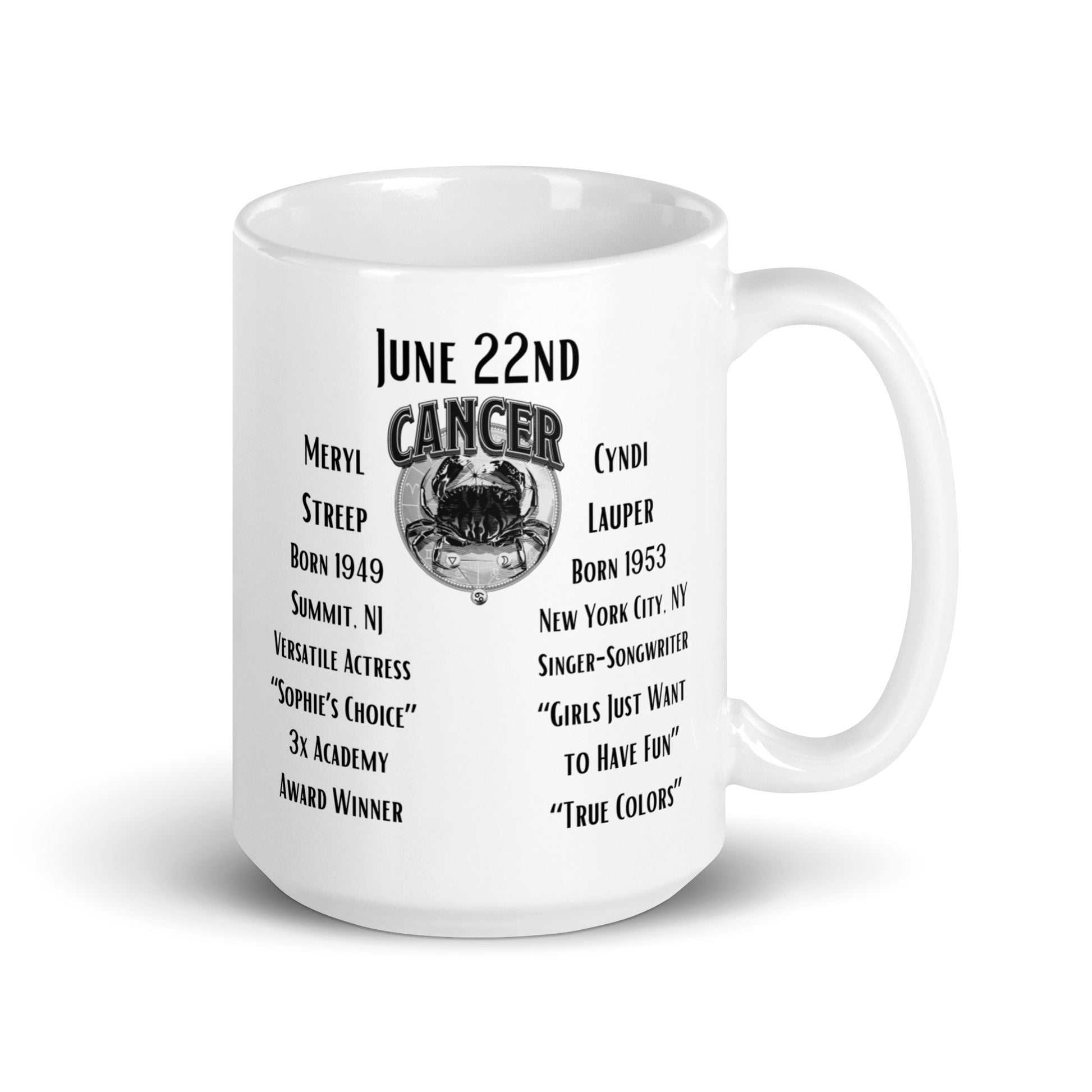 On This Day: Birthday Series - June 22nd - (B) Meryl Streep & Cyndi Lauper - White glossy mug
