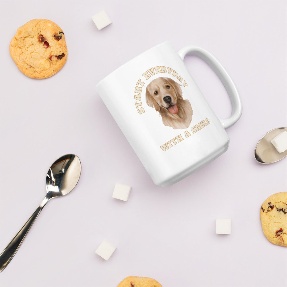 Man's Best Friend #07 Golden Retriever "START EVERYDAY WITH A SMILE"White glossy mug