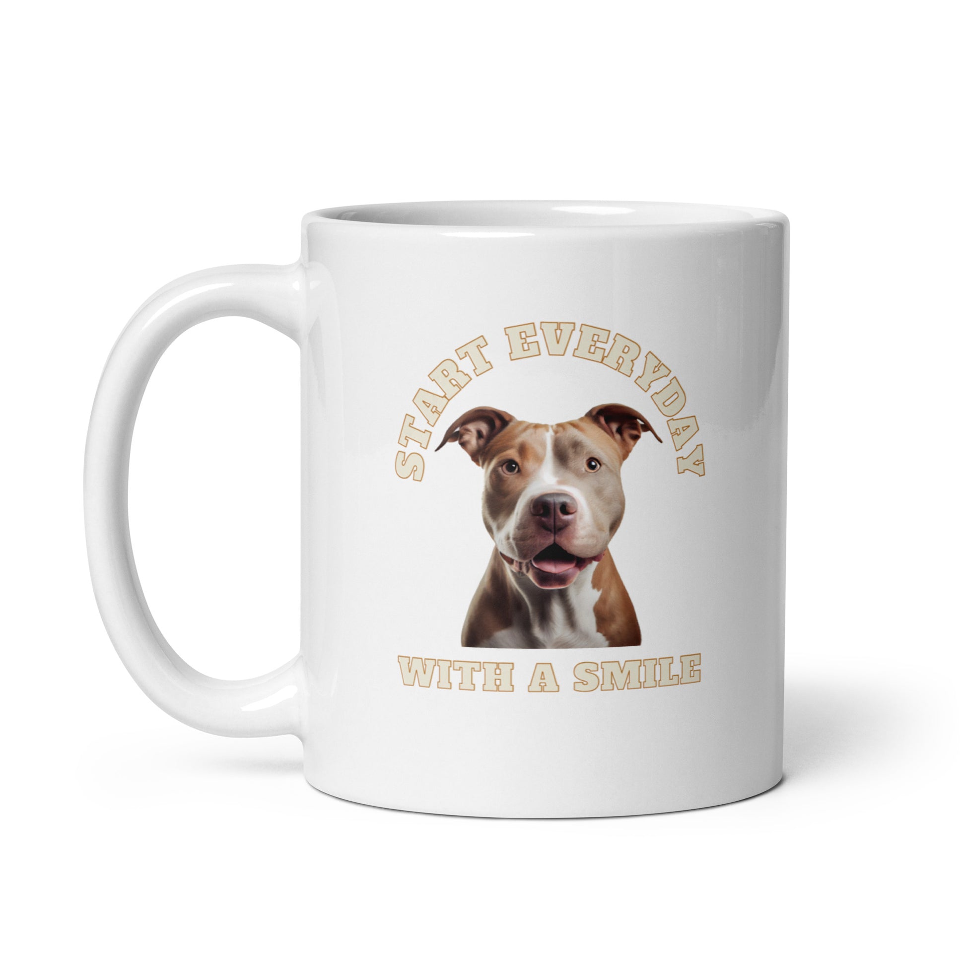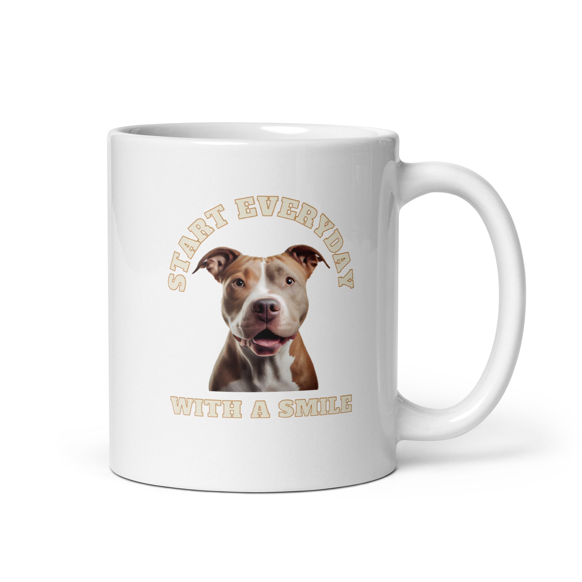 Man's Best Friend #08 American Pit Bull "START EVERYDAY WITH A SMILE" White glossy mug