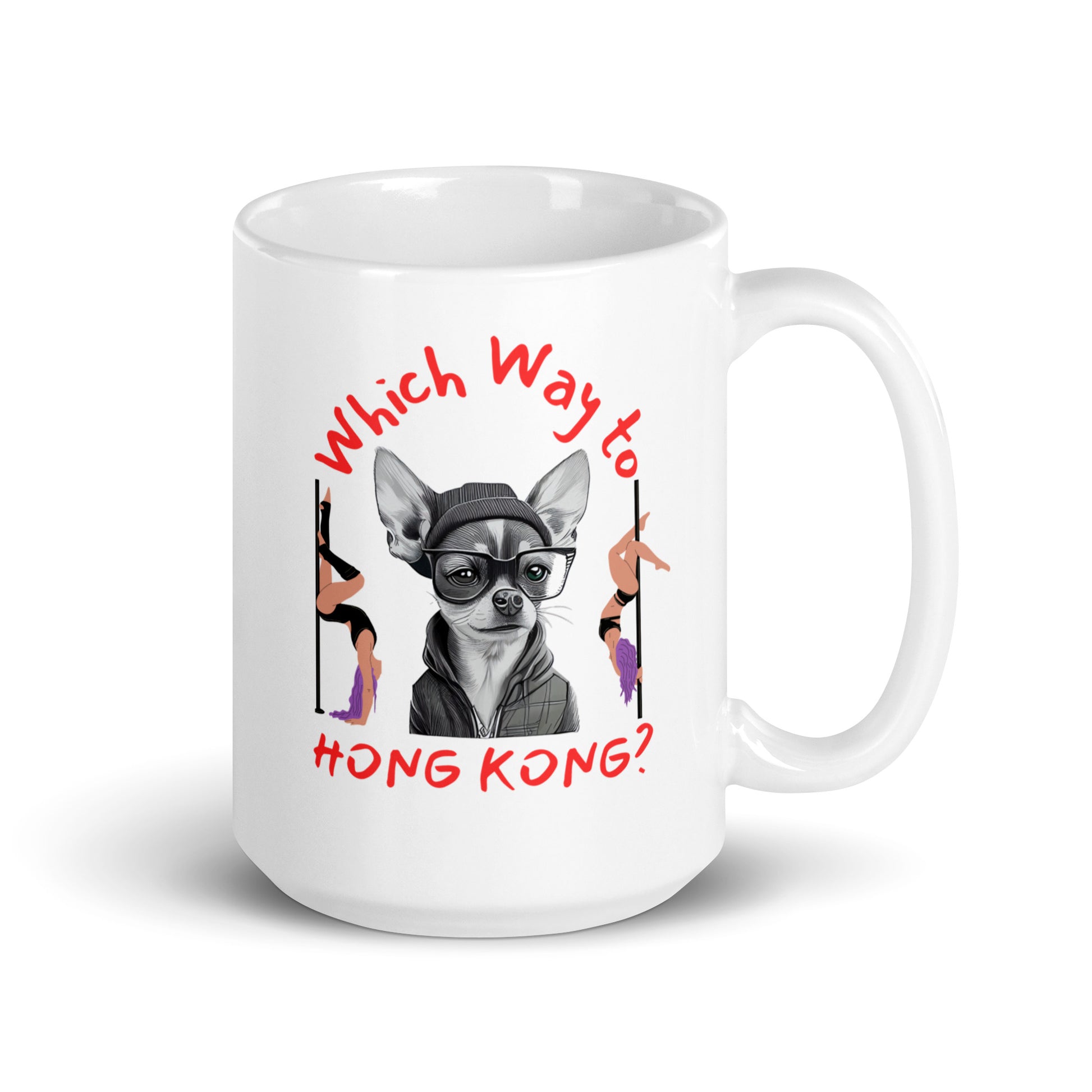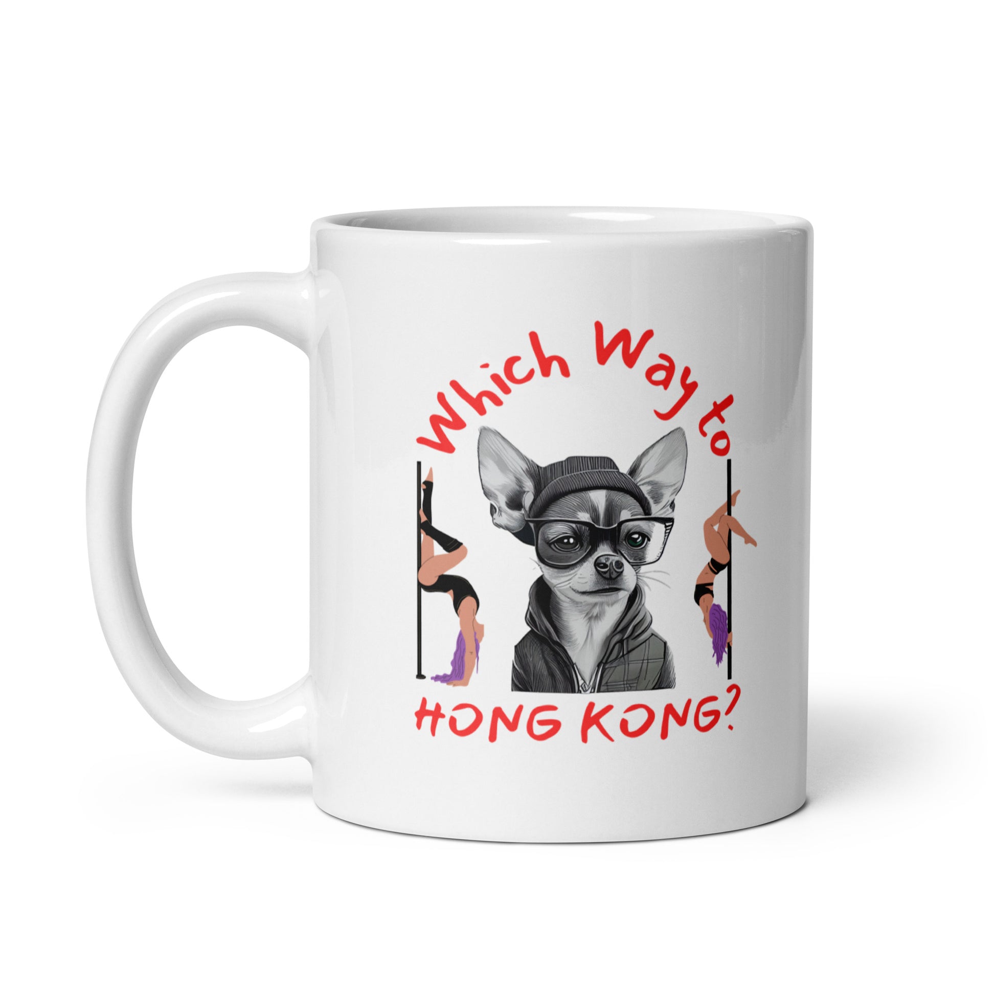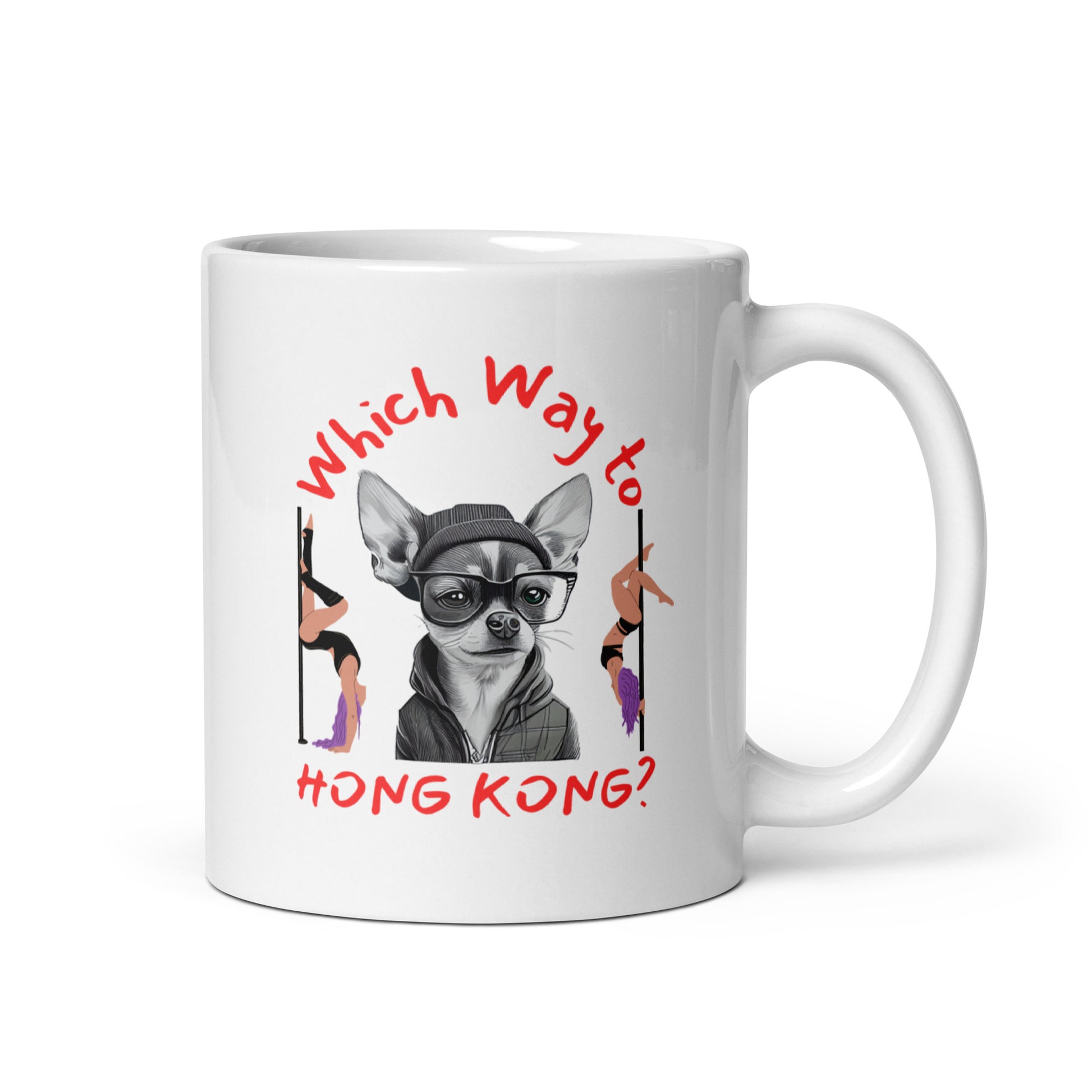 Get the party started with this hilarious mug featuring a chill Chihuahua surrounded by strippers on poles. With the text "Which Way to HONG KONG!" this mug is perfect for anyone who loves a good laugh and enjoys a fun and playful atmosphere. Whether you're sipping your morning coffee or enjoying a refreshing beverage, this mug will bring a smile to your face and add a touch of humor to your day. Makes a great gift for friends or family who appreciate quirky and funny designs. Cheers to good times and unforgettable memories with this party-themed mug! Makes a great Bachelor party gift. Collect all four!