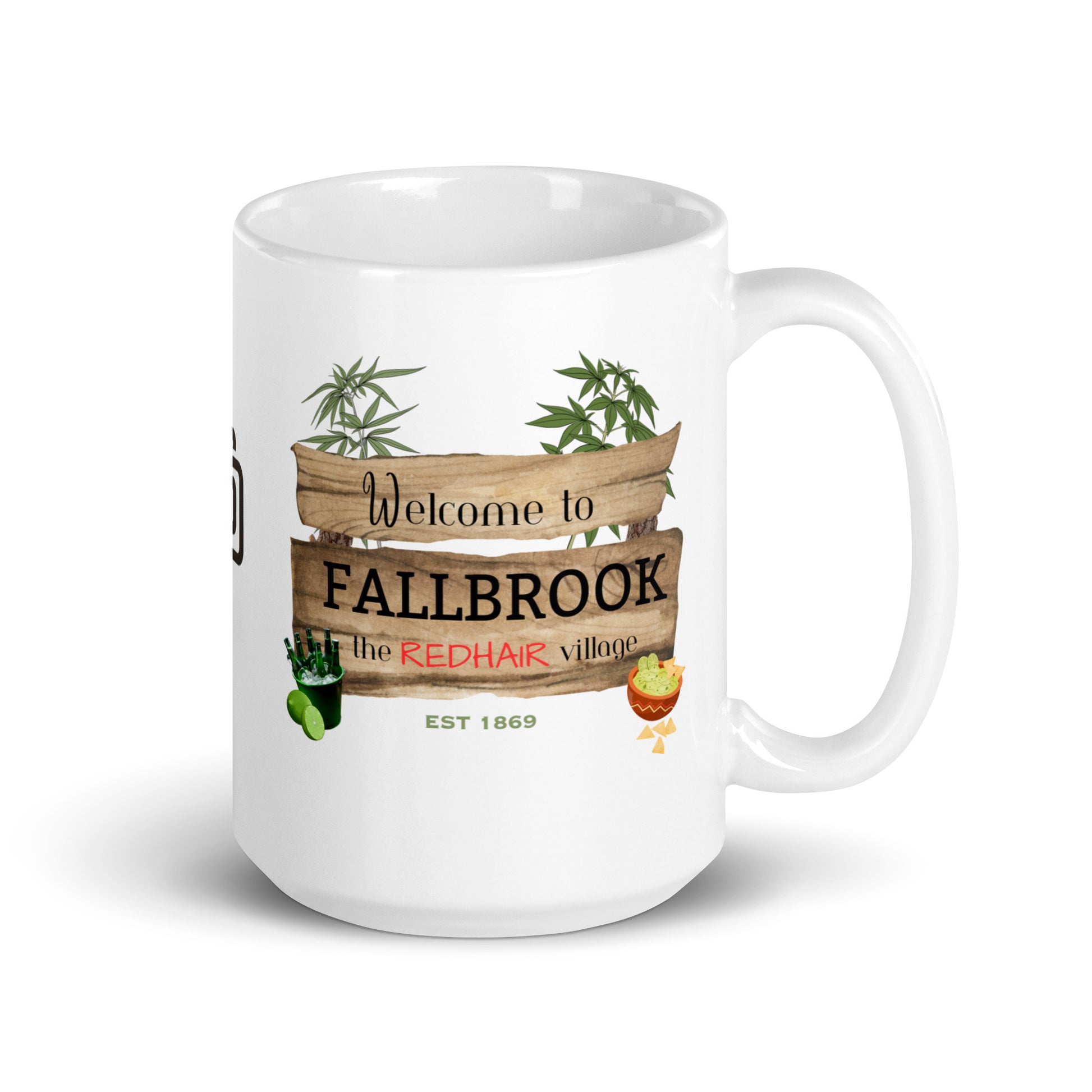 Step back in time with our Nostalgia Series mug featuring the iconic "Welcome to FALLBROOK the REDHAIR village" sign. This design pays homage to the town's legendary past with a playful twist. The bowl of guacamole with chips represents Fallbrook's rich history as the avocado capital of the world, while the bucket of beers with a lime signifies our love for good times and celebration. Let this mug take you on a journey to the late 70s and early 80s, capturing the essence of the era and the unique spirit of Fallbrook. Sip your favorite beverage and reminisce about the Redhair village's vibrant past. Cheers to nostalgia, good vibes, and unforgettable memories. It's sturdy and glossy with a vivid print that'll withstand the microwave and dishwasher.
